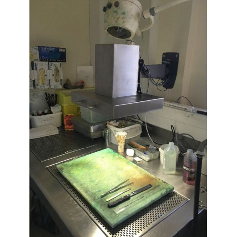 It was brought to the attention of Digital Imaging Systems that there was a need to image gross tissue specimens directly on the Grossing workstation bench. Tissue does not then have to be moved to a different area to be imaged speeding up the whole gross specimen procedure.